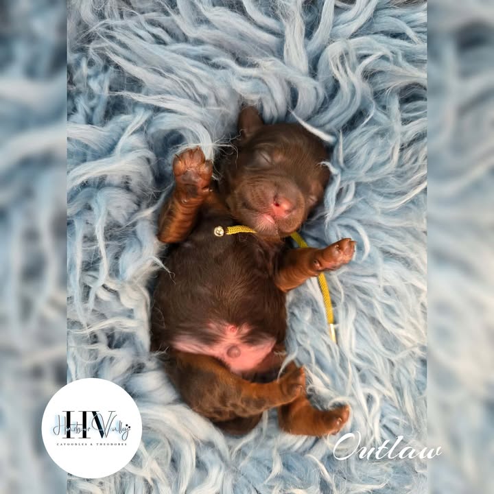 Outlaw is a striking second-generation Theodore with a plush, wavy coat and a bold little presence. He has a confident yet affectionate nature and is sure to grow into a loyal, loving companion.